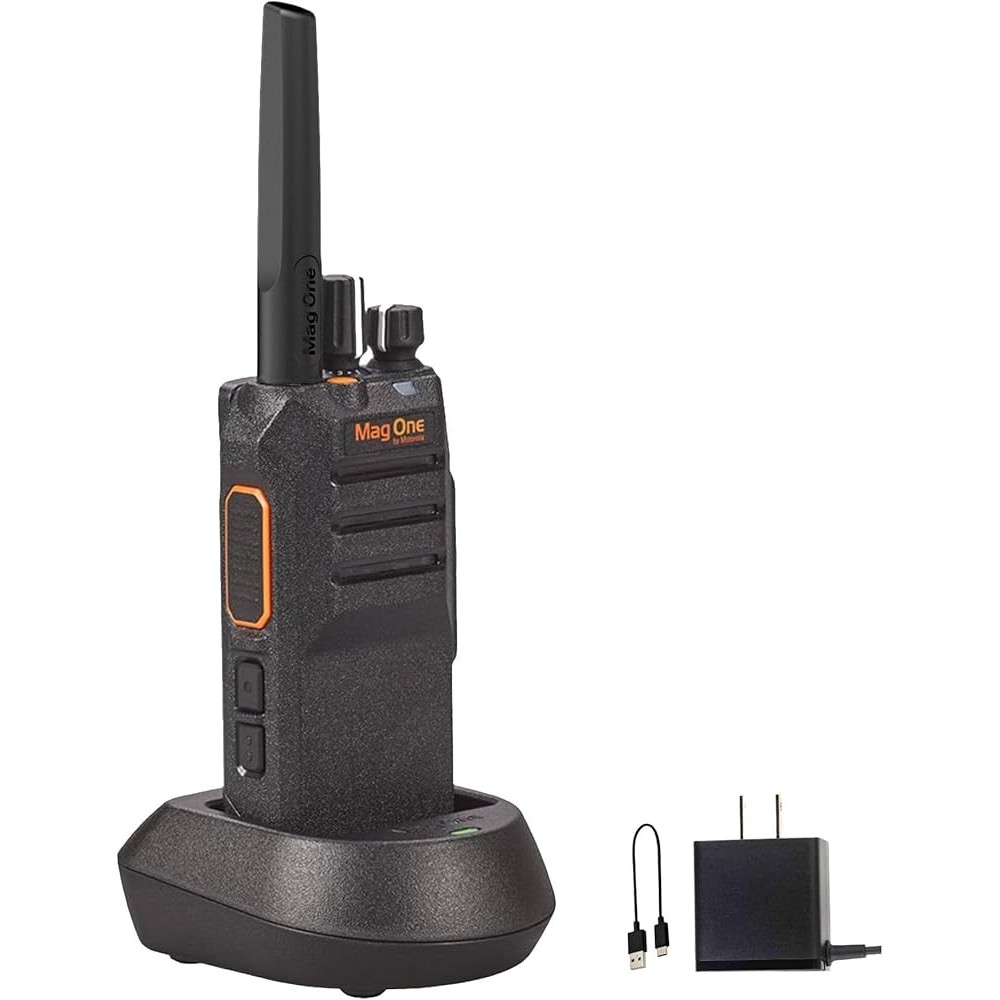 The Motorola BPR50DX is a versatile and high-performing two-way radio designed to enhance communication for your business workforce. This Mag One series radio supports both analog and digital (DMR II) communications, providing clear and reliable push-to-talk voice. With an impressive battery life of up to 23 hours and improved range performance, the BPR50DX ensures extended communication coverage for various business environments, including retail, events, and campus management. Its convenient USB-C charging port allows for easy power-up with standard USB chargers.
