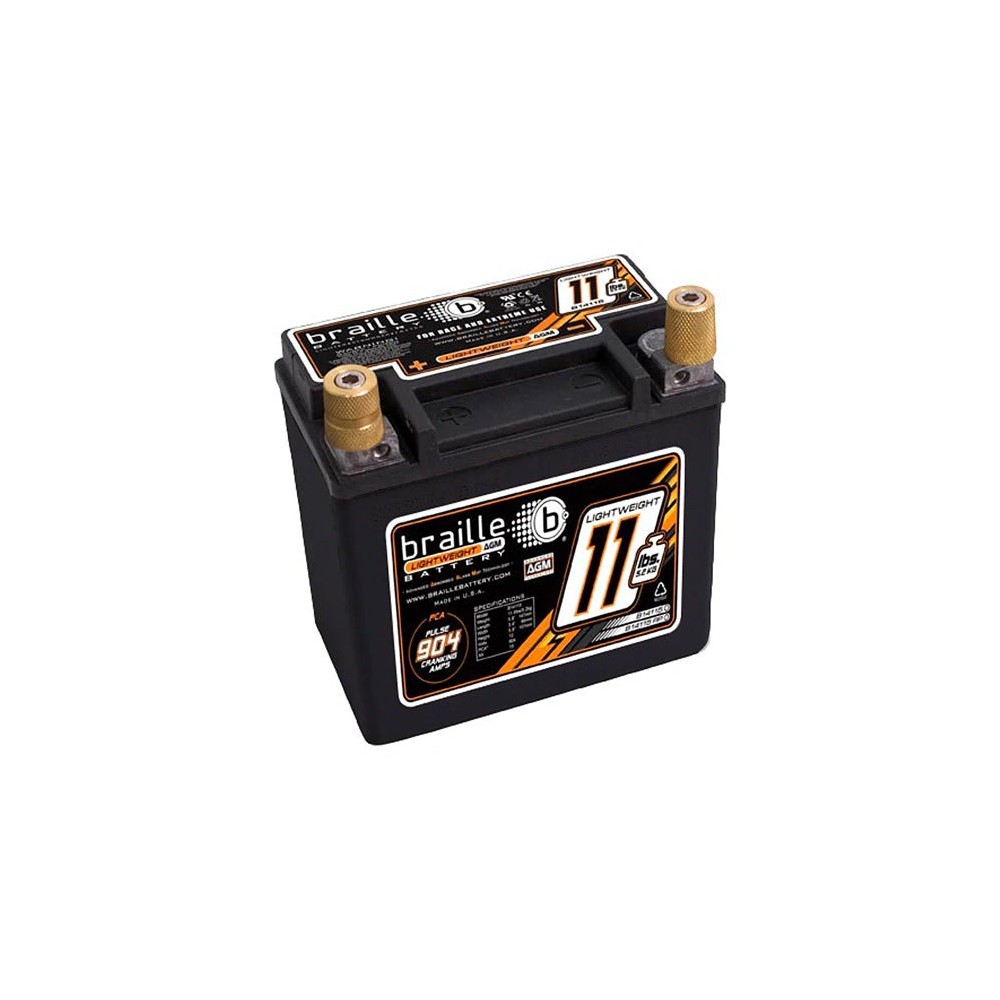 At only 11.5 lbs, the B14115 Braille Lightweight Advanced AGM Racing Battery is a high-performance upgrade from a traditional lead acid battery. Offering weight reduction, more power output and lasting up to 2 times longer than traditional lead acid batteries!