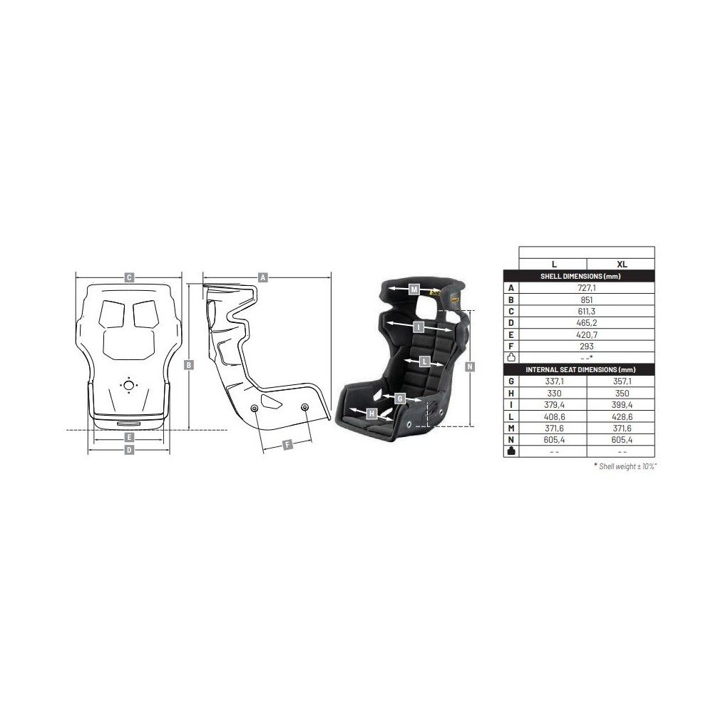 • FIA 8866-2000 carbon fiber racing seat designed for compact cockpit applications with full containment protection..